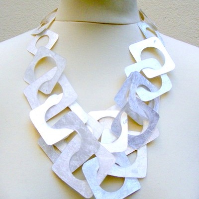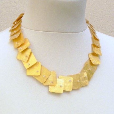 Das e d e l s t e Material in absoluter Reinheit wird in einem speziellen Verfahren in Kunststoff eingebettet und zu dreidimensionalen körperschmeichelnden XXL Ketten, Colliers und großen Ohrgehängen montiert. Die besondere Leichtigkeit (briefumschlagschwer) und Strahlkraft bieten der Trägerin ein unkompliziertes Tragen und garantierten einen großen Auftritt mit Showeffekt. Echtes Gold, mit 24 ct die wärmste Echtgoldfarbe, und reines 1000er Silber, brilliant leuchtend ,rötlich glühendes 100%iges Kupfer. Jedes einzelne Confetti wird in meinem Atelier handgearbeitet, hat materialbedingt eine lebendige Oberfläche und ist mit einem Echtheits-Zertifikat ausgestattet. Jede Kette ist in Gold, Silber oder Kupfer mit durchsichtigem oder schwarzem Kunststoffdraht erhältlich. Kontaktieren Sie mich bitte unter: info@typicad.de